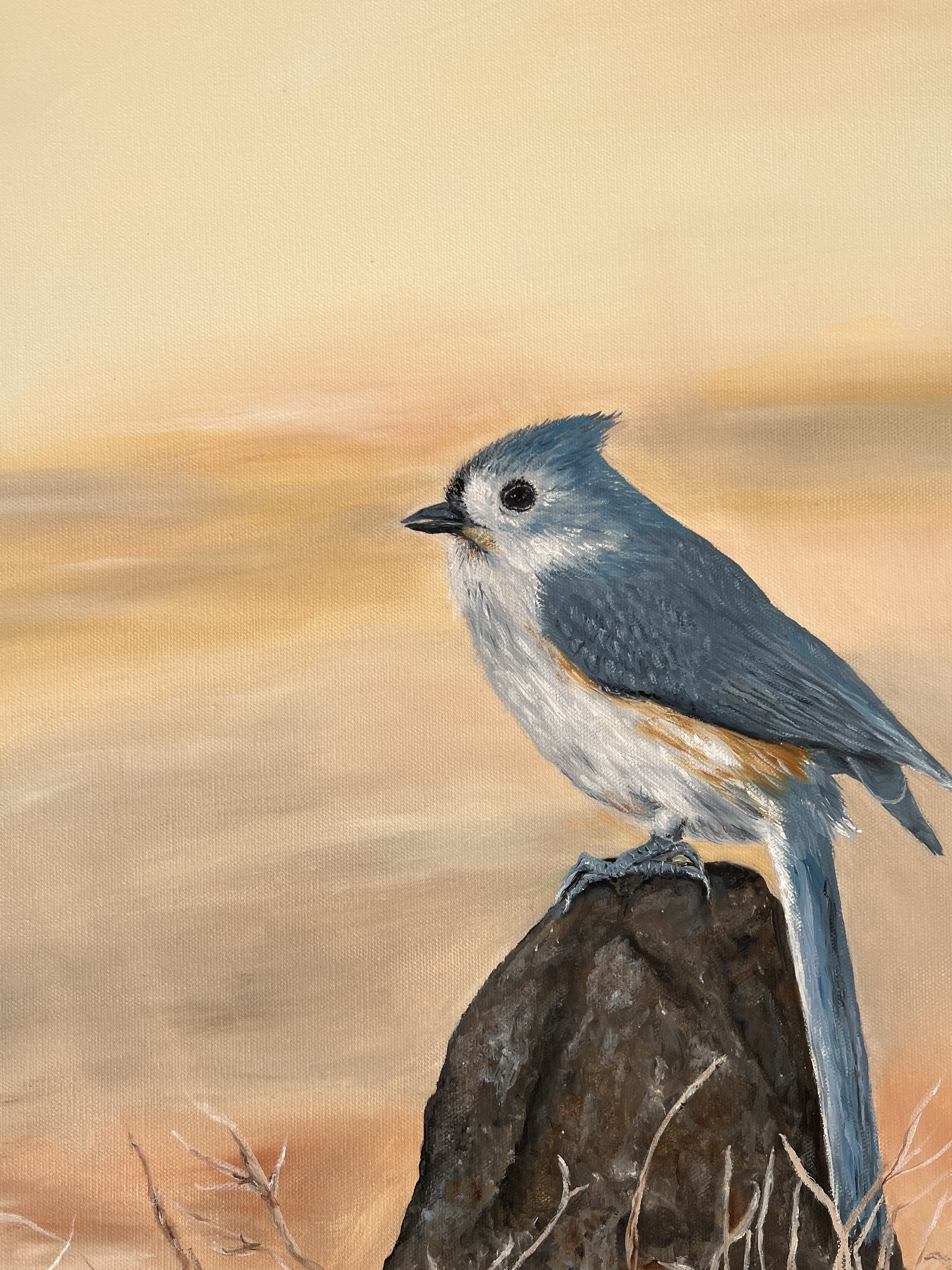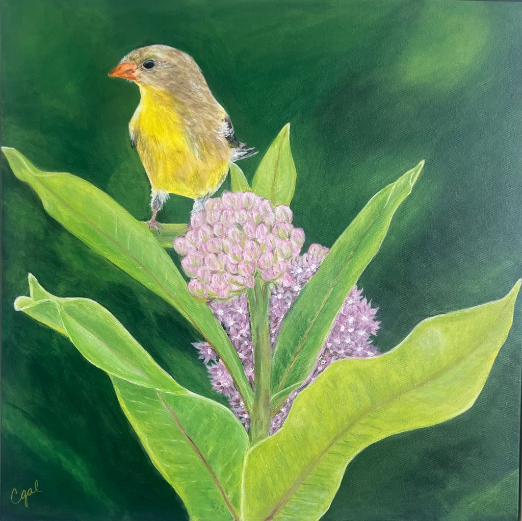 “Good morning sunshine” -Birds- Oil painting 20 x 20 in. White floater frame